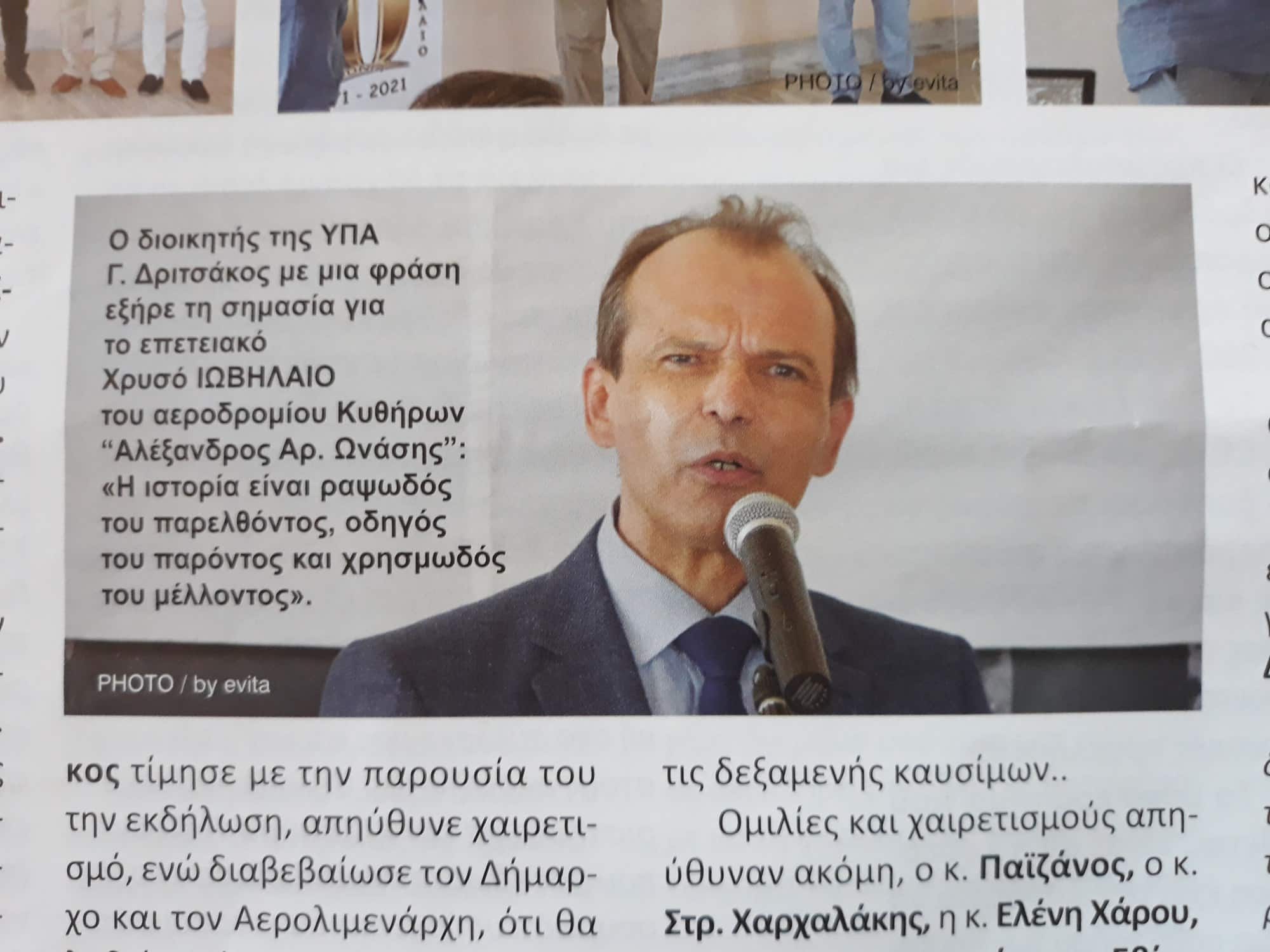 «Αεροδρόμιο Κυθήρων,το ιστορικό όνομα Ωνάσης, η πανευρωπαϊκή διάκριση και τα γενέθλια 50 χρόνων του αερολιμένα κόσμημα για την χώρα μας»