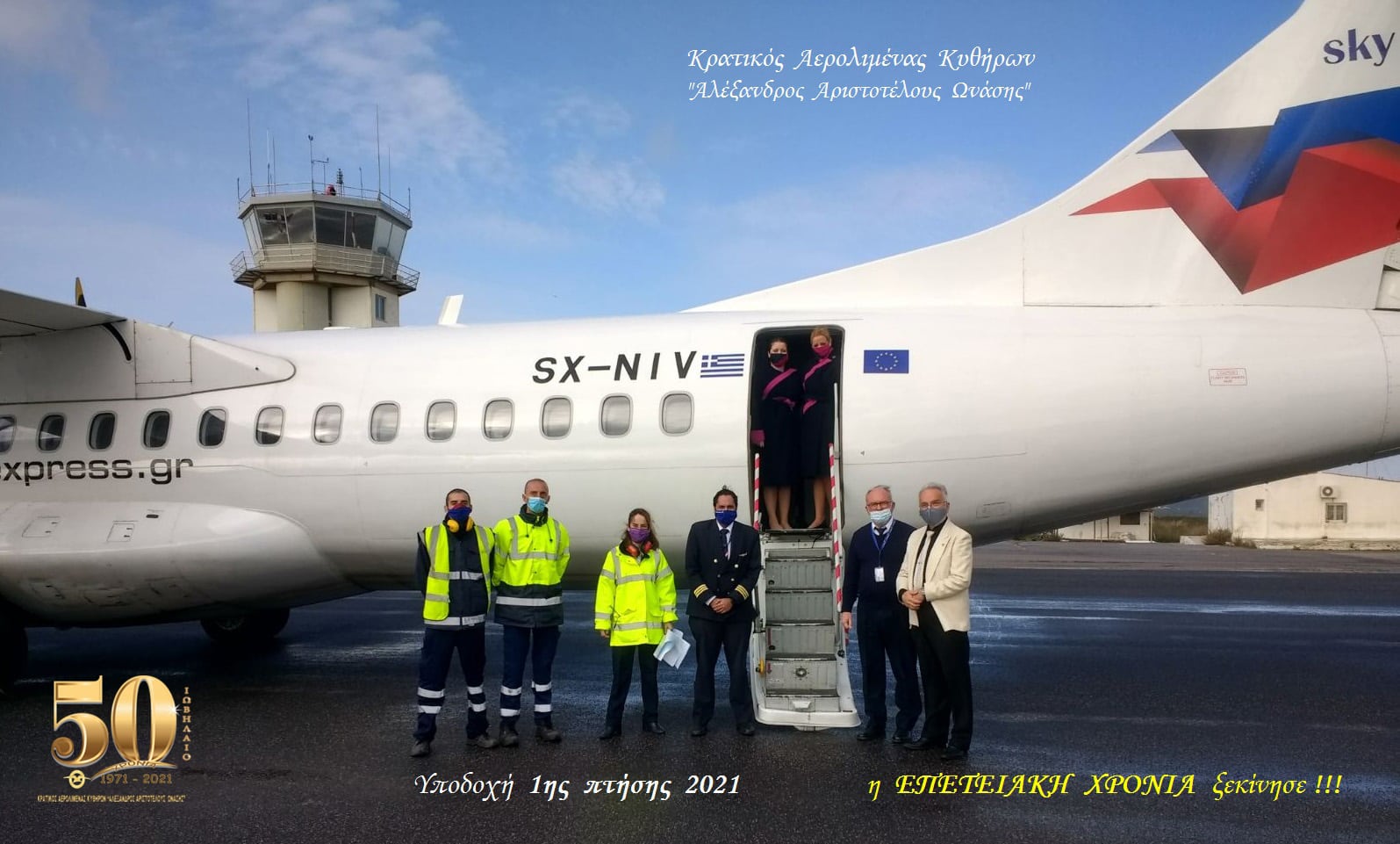 Για την χώρα μας φέτος κυριαρχεί η επέτειος των 200 χρόνων από την Επανάσταση του 1821, ιδιαίτερα όμως για το νησί μας , το 2021 φέρνει και μιαν άλλη επέτειο, το “χρυσό ιωβηλαίο” των 50 ΧΡΟΝΩΝ από την πρώτη πτήση στα Κύθηρα, πολύ σημαντική για την εξέλιξη και την επικοινωνία του νησιού με τον έξω κόσμο. Η πτήση του ιστορικού αεροπλάνου Skyvan με νηολόγιο (registration) SX BBN & όνομα “Νήσος Μύκονος” της θρυλικής “Ολυμπιακής Αεροπορίας” του Αριστοτέλη Ωνάση, αποτελεί σταθμό της ιστορίας του Τσιρίγου.