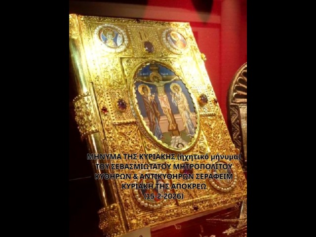 Ιερά Μητρόπολη Κυθήρων – Το μήνυμα της Κυριακής (15-02-2026)