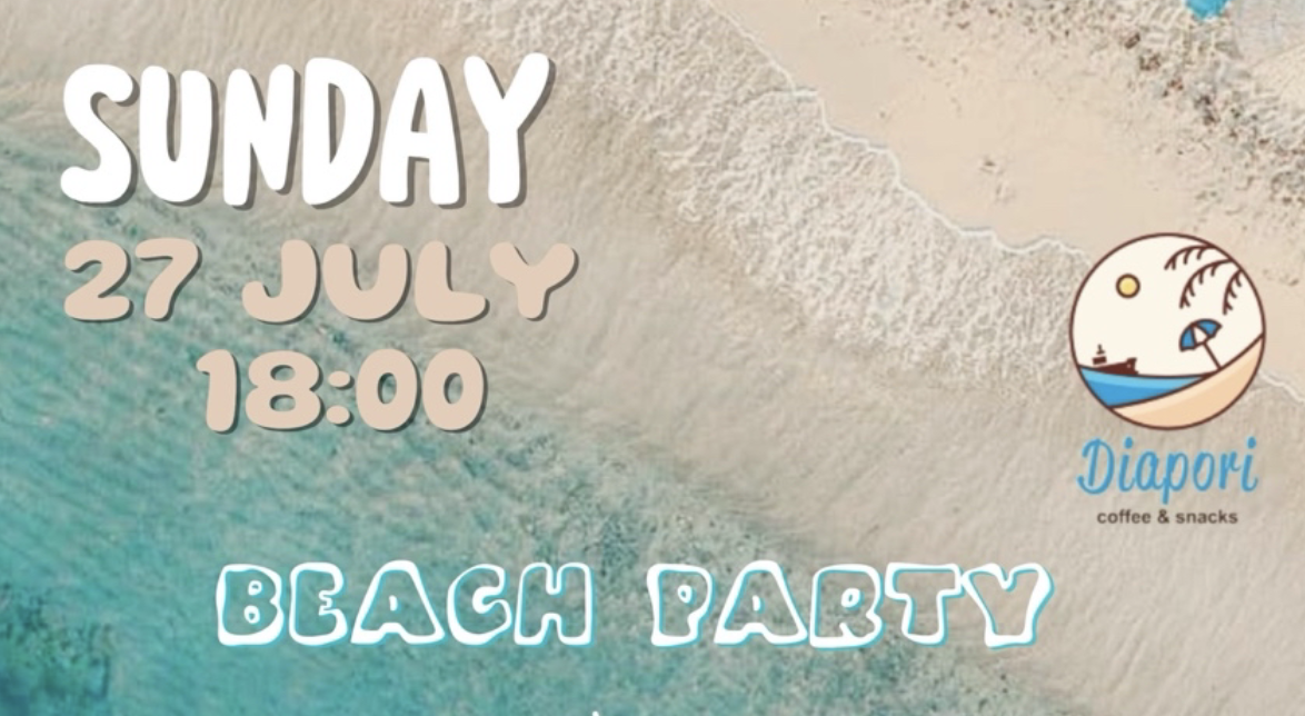 Το καλοκαίρι στα Κύθηρα κορυφώνεται με το απόλυτο Beach Party! Την Κυριακή 27 Ιουλίου στις 18:00, η αγαπημένη παραλία του Diapori Coffee & Snacks (γέφυρα Διακοφτίου) γεμίζει μουσική, ρυθμό και καλοκαιρινή ενέργεια.