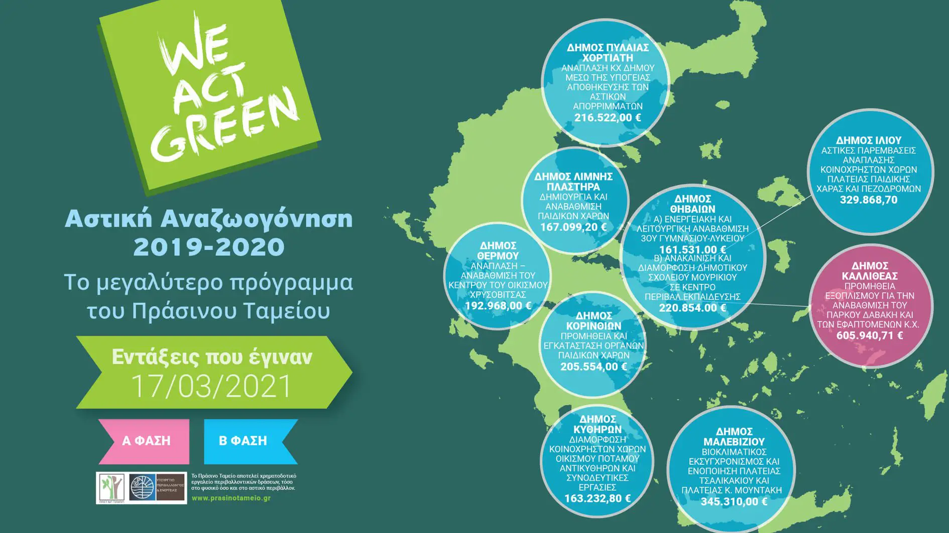 Με απόφαση του Δ.Σ. του Πράσινου Ταμείου, εντάχθηκε στον Άξονα Προτεραιότητας 1 «Αστική Αναζωογόνηση» του Χρηματοδοτικού Προγράμματος «ΔΡΑΣΕΙΣ ΠΕΡΙΒΑΛΛΟΝΤΙΚΟΥ ΙΣΟΖΥΓΙΟΥ» με επιλέξιμο προϋπολογισμό 163.232,80€, το έργο «Διαμόρφωση κοινοχρήστων χώρων οικισμού Ποταμού Αντικυθήρων και συνοδευτικές εργασίες».
