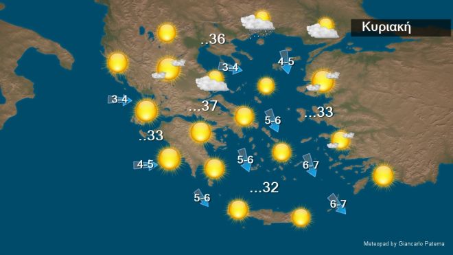 Η πρόγνωση του καιρού για την Κυριακή 06/08