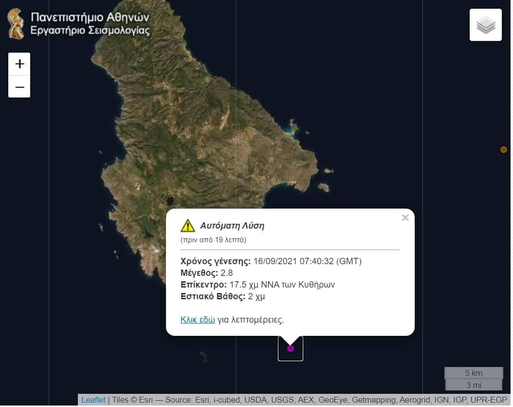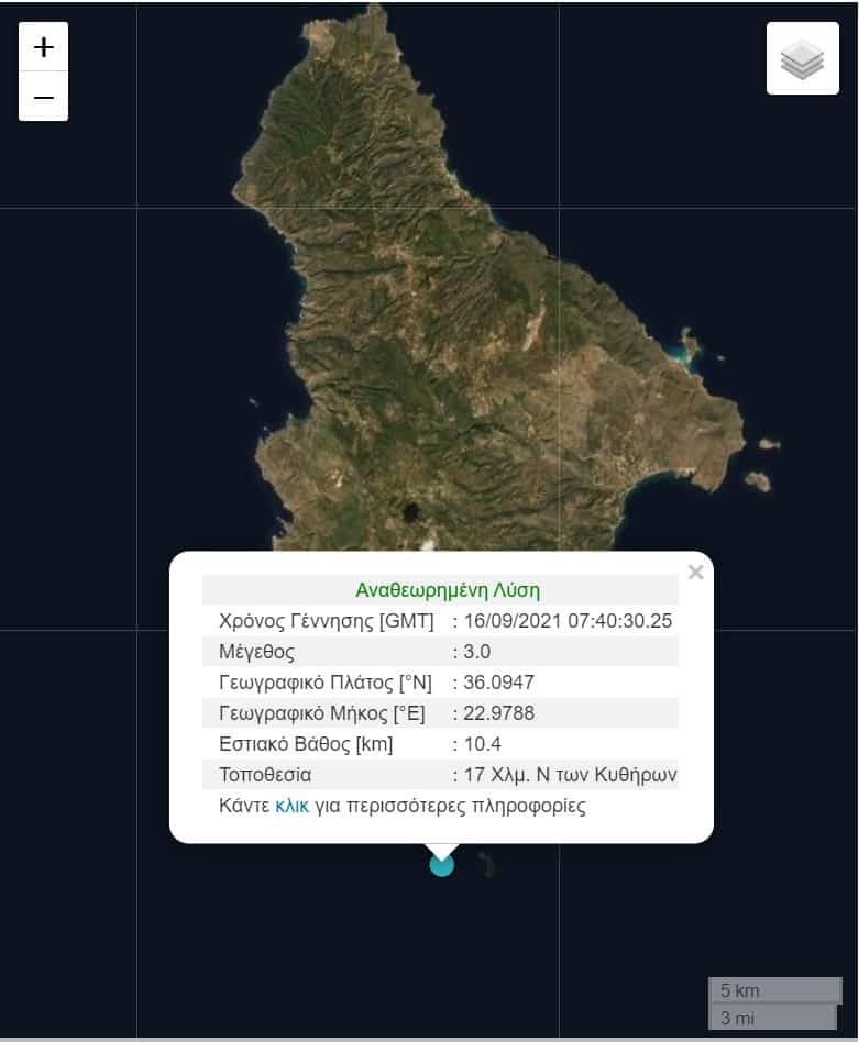 Σεισμική δόνηση, που έγινε αισθητή, σημειώθηκε στις 10:40 στην ευρύτερη περιοχή των Κυθήρων.