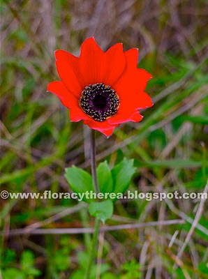 Οι διαφορές της από της ανεμώνη τη στεφανωματική είναι μικρές για το μάτι του μη ειδικού. Ανθίζει αργότερα, στα τέλη Ιανουαρίου και ιδιαίτερα η κόκκινη παραμένει ανθισμένη μέχρι αργά την άνοιξη. Τα φύλλα του υπανθίου είναι σχεδόν ακέραια, λογχοειδή ή ελαφρά οδοντωτά στην άκρη. Τα εντυπωσιακά σέπαλα είναι περισσότερα. Ο Σφήκας αναφέρει ότι το είδος απαντάται στην ηπειρωτική κυρίως Ελλάδα σε δύο βασικές ποικιλίες, α)var. pavonina, με άνθη εντελώς κόκκινα ή κόκκινα με έναν ανοιχτόχρωμο κύκλο προς τη βάση των σεπάλων.
