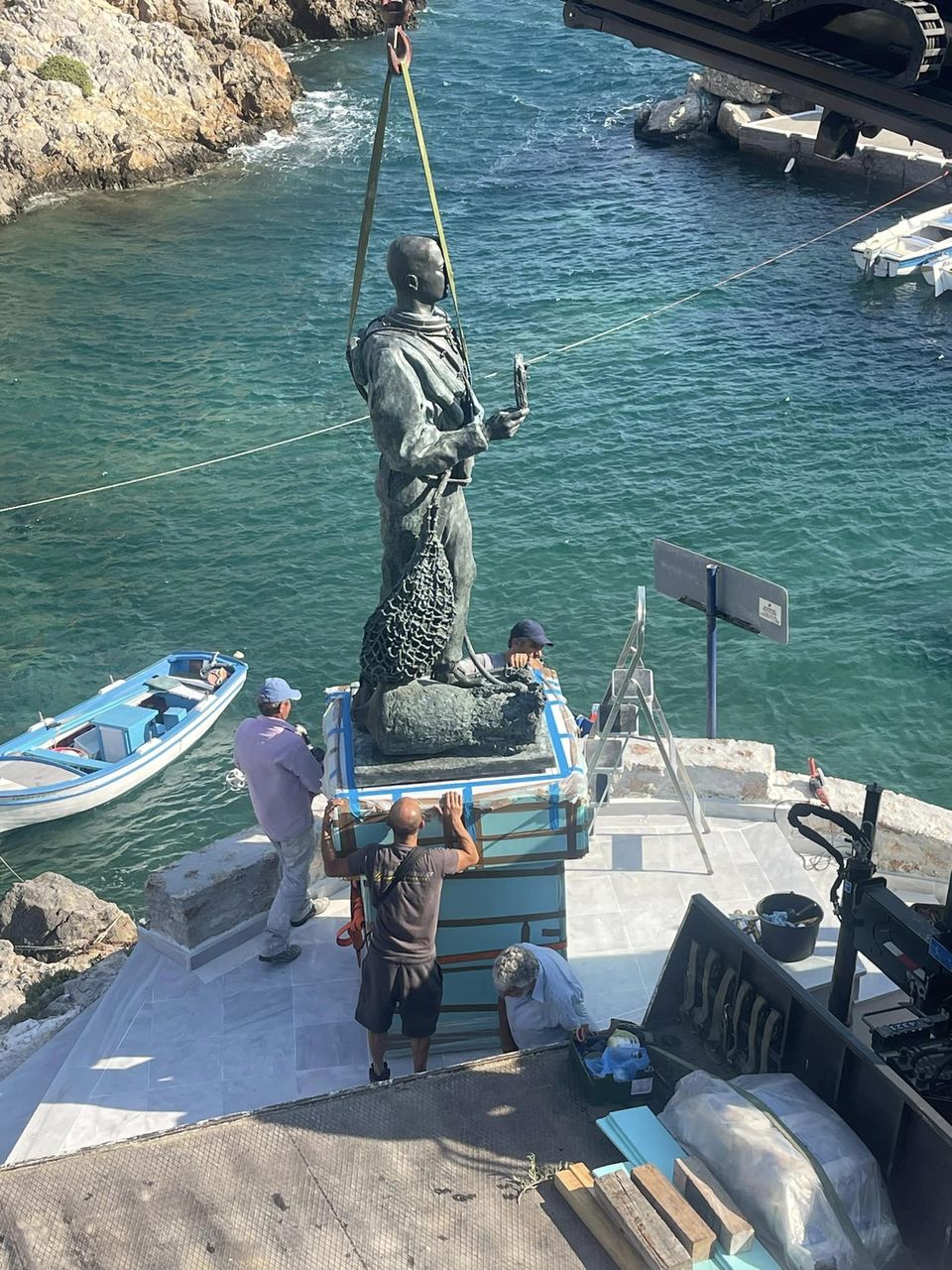 Το μνημείο, το οποίο στήθηκε μετά από εισήγηση του πρώην Αντιπεριφερειάρχη στην Περιφερειακή Διοίκηση, τοποθετήθηκε στο λιμάνι του νησιού. «Η ΧΑΡΑ ΚΙ Η ΙΚΑΝΟΠΟΙΗΣΗ ΑΠΕΡΙΓΡΑΠΤΕΣ», σημείωσε, εκφράζοντας την ευγνωμοσύνη του προς την γλύπτρια Νικολίτσα Λεοντή και όλους όσοι συνέβαλαν στην ολοκλήρωση του έργου.