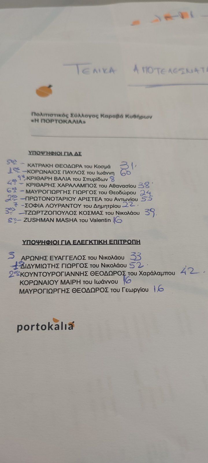 Την περασμένη Κυριακή πραγματοποιήθηκε με επιτυχία η Εκλογοαπολογιστική Συνέλευση της Πορτοκαλιάς μας.