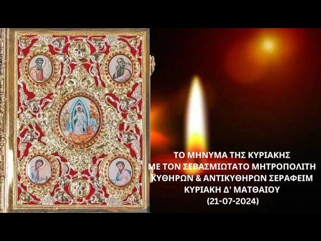 ΚΥΘΗΡΩΝ & ΑΝΤΙΚΥΘΗΡΩΝ ΣΕΡΑΦΕΙΜ ΚΥΡΙΑΚΗ Δ’ ΜΑΤΘΑΙΟΥ – (21-07-2024)
