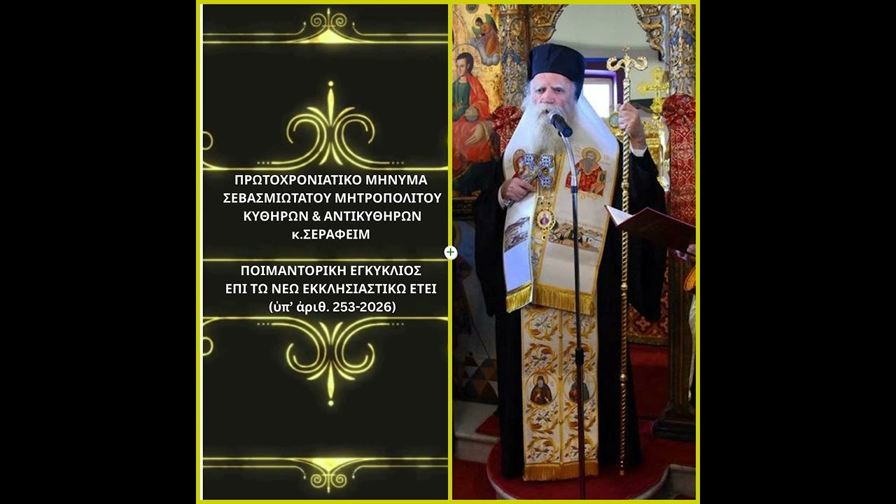 Κυθήρων & Αντικυθήρων Σεραφείμ: Ποιμαντορική Εγκύκλιος επί τω νέω έτει