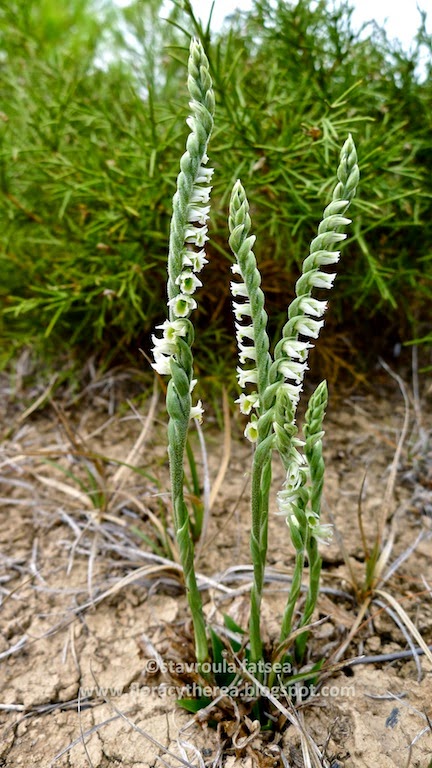 Το μακρύ στέλεχος όπου θα ανθίσουν τα μικροσκοπικά λευκά άνθη βγαίνει πρώτο από το έδαφος και ακολουθούν τα φύλλα της ροζέτας κάπως στο πλάι του. Τα φύλλα αυτά, αρχικά είναι σχεδόν όρθια ενώ στην ωριμότητά τους αναπτύσσονται επίπεδα, κολλητά στο έδαφος σε μια προσπάθεια να αποφύγουν τους φυτοφάγους θηρευτές. Το φυτό μπορεί να φτάσει τα 20 εκατοστά ύψος αλλά τα χλωμά χρώματά του το κάνουν δυσδιάκριτο.Η spiranthes spiralis σκορπά ένα υπέροχο λεπτό άρωμα ιδιαίτερα το βράδυ. Βάμμα της ρίζας χρησιμοποιείται σαν ομοιοπαθητικό φάρμακο.