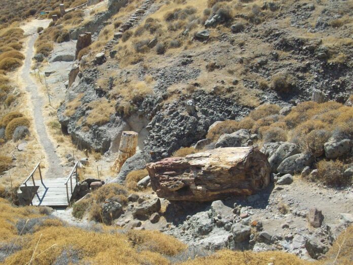 Ένα μεγάλο απολιθωμένο δένδρο που διατηρήθηκε ακέραιο με τα κλαδιά και τις ρίζες του εντοπίσθηκε, τις τελευταίες ημέρες, κατά τη διάρκεια σωστικών ανασκαφών που πραγματοποιούνται κατά μήκος του οδικού άξονα Καλλονής-Σιγρίου στη Λέσβο.