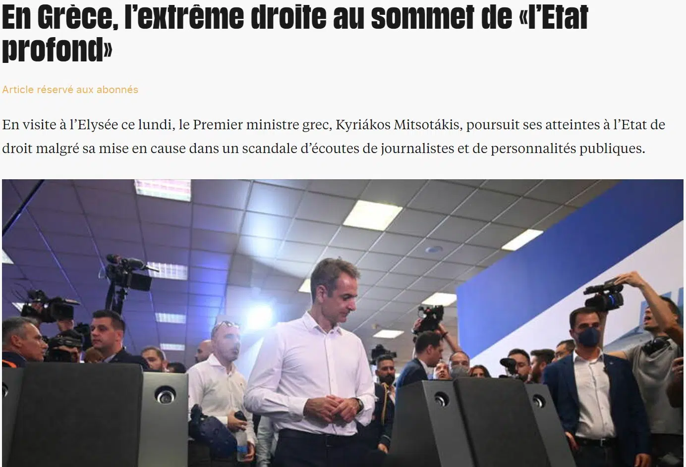 Το δημοσίευμα της έγκυρης γαλλικής εφημερίδας επιβεβαιώνει πως δεν έχει τέλος ο διεθνής διασυρμός της κυβέρνησης Μητσοτάκη για το σκάνδαλο των υποκλοπών στην Ελλάδα.