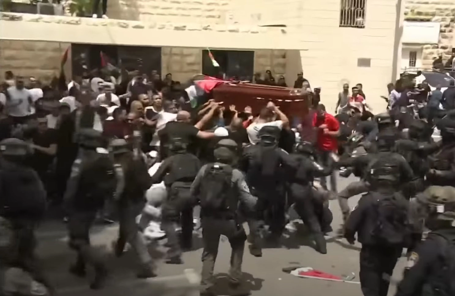 Οι εικόνες αυτές ήταν μια γροθιά στο στομάχι: Ισραηλινοί αστυνομικοί να επιτίθενται και να χτυπούν Παλαιστίνιους οι οποίοι μετέφεραν το φέρετρο με τη σορό της δημοσιογράφου του Al Jazeera, Σιρίν Αμπού Ακλέχ, η οποία είχε πέσει νεκρή σε ώρα εργασίας, χτυπημένη στο κεφάλι από σφαίρα… Για λίγο να «φεύγει» το φέρετρο από τους μεταφορείς του και εκείνοι με δυσκολία να το συγκρατούν ενώ δέχονται κτυπήματα με γκλομπ. Εικόνες που λες, δεν μπορεί να είναι αληθινές…