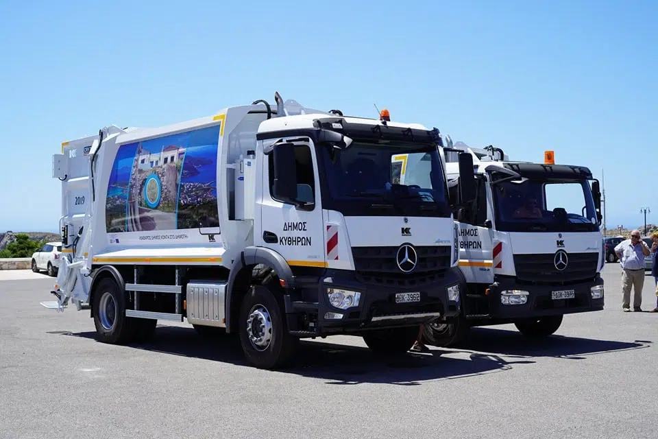 Ο Δήμαρχος Κυθήρων κ. Ευστράτιος Χαρχαλάκης υπέγραψε τη σύμβαση προμήθειας ενός (1) καινούργιου απορριμματοφόρου οχήματος, με την ανάδοχο εταιρεία «Βιομηχανία Ειδικών Κατασκευών Α. Καούσης Α.Ε.».