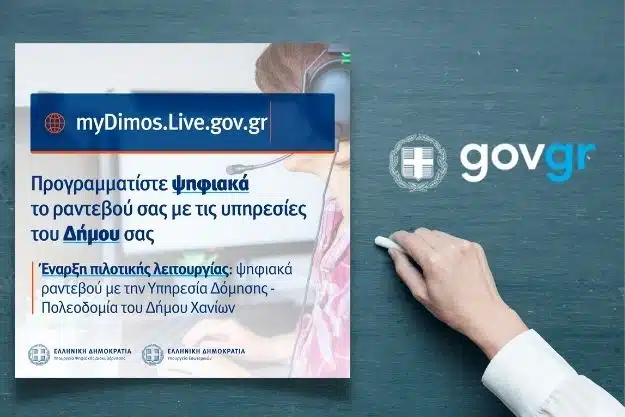 Υπενθυμίζεται ότι το myDimos.Live.gov.gr ξεκίνησε να λειτουργεί πιλοτικά τον περασμένο Μάρτιο στον Δήμο Χανίων. Κατόπιν, τον Ιούνιο εντάχθηκε στην υπηρεσία και ο Δήμος Καβάλας, ενώ σε εξέλιξη βρίσκεται η ένταξη και άλλων Δήμων. Η υπηρεσία είναι προσβάσιμη είτε στο myDimos.Live.gov.gr, είτε μέσω του gov.gr, στην ενότητα «Πολίτης και καθημερινότητα» και την υποενότητα «Εξ αποστάσεως εξυπηρέτηση πολιτών».