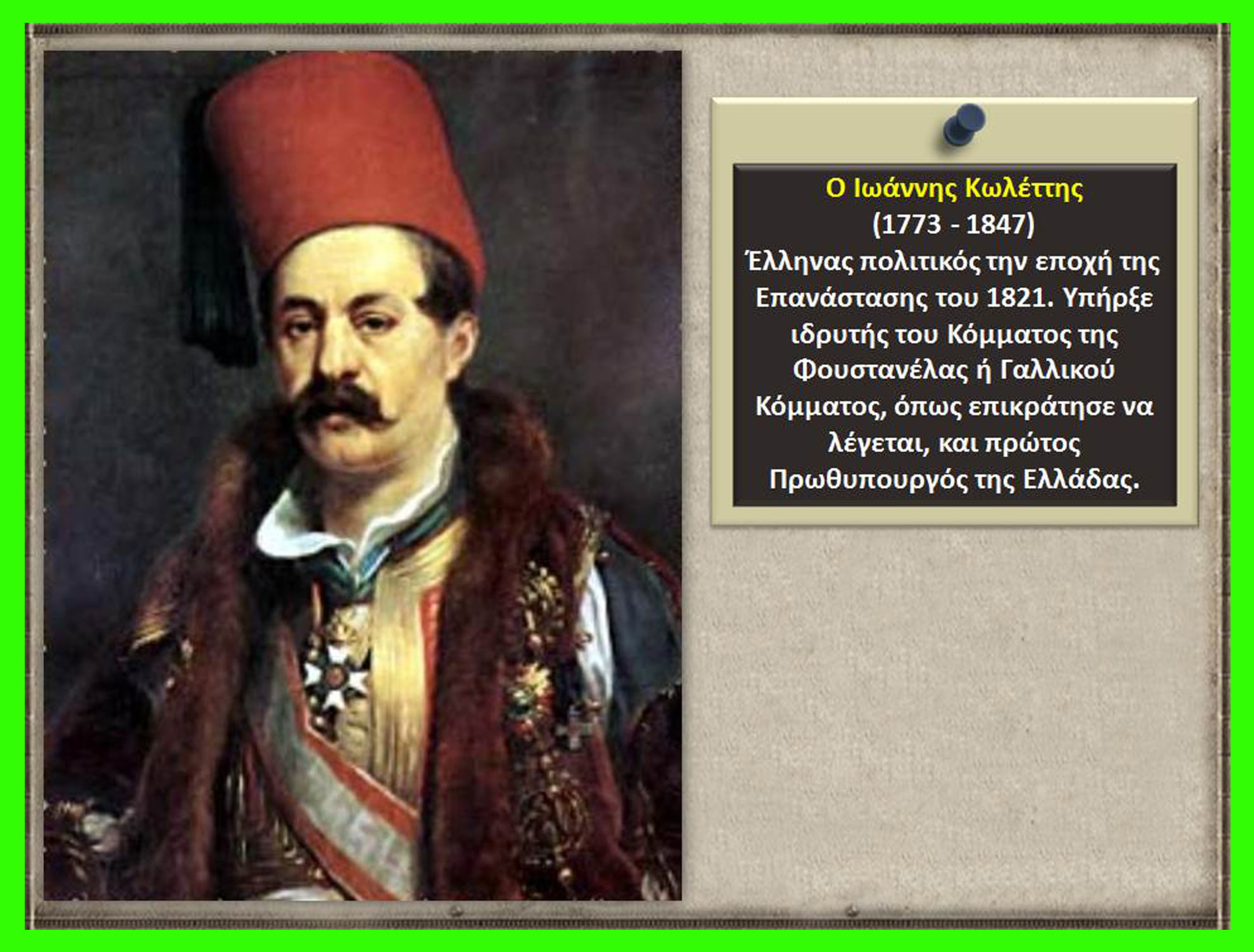 ο Ιωάννης Κωλέττης, πρώην γιατρός του Αλή πασά, ιδρυτής του