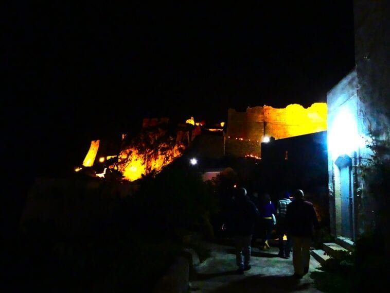 Η Περιφορά προχωρά και φτάνει μέχρι την είσοδο του ενετικού κάστρου. Οι πιστοί τοποθετούν μικρά τσίγκινα τενεκεδάκια σαν αυτοσχέδια καντήλια σε όλους τους βράχους του κόλπου μέχρι το φάρο και πάνω στο κάστρο, και τα ανάβουν μόλις περνάει ο Επιτάφιος.