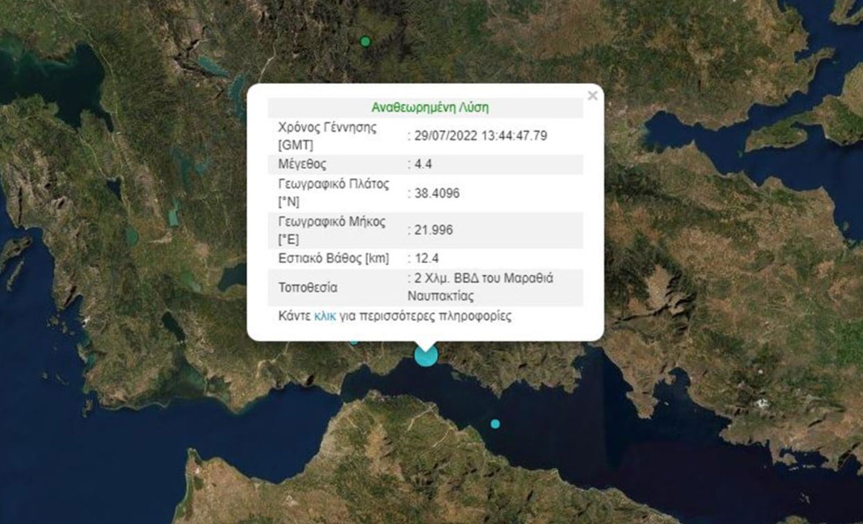 Το επίκεντρο του σεισμού είναι 1 χιλιόμετρο Δυτικά, Βορειοδυτικά του Μαραθιά Ναυπακτίας.