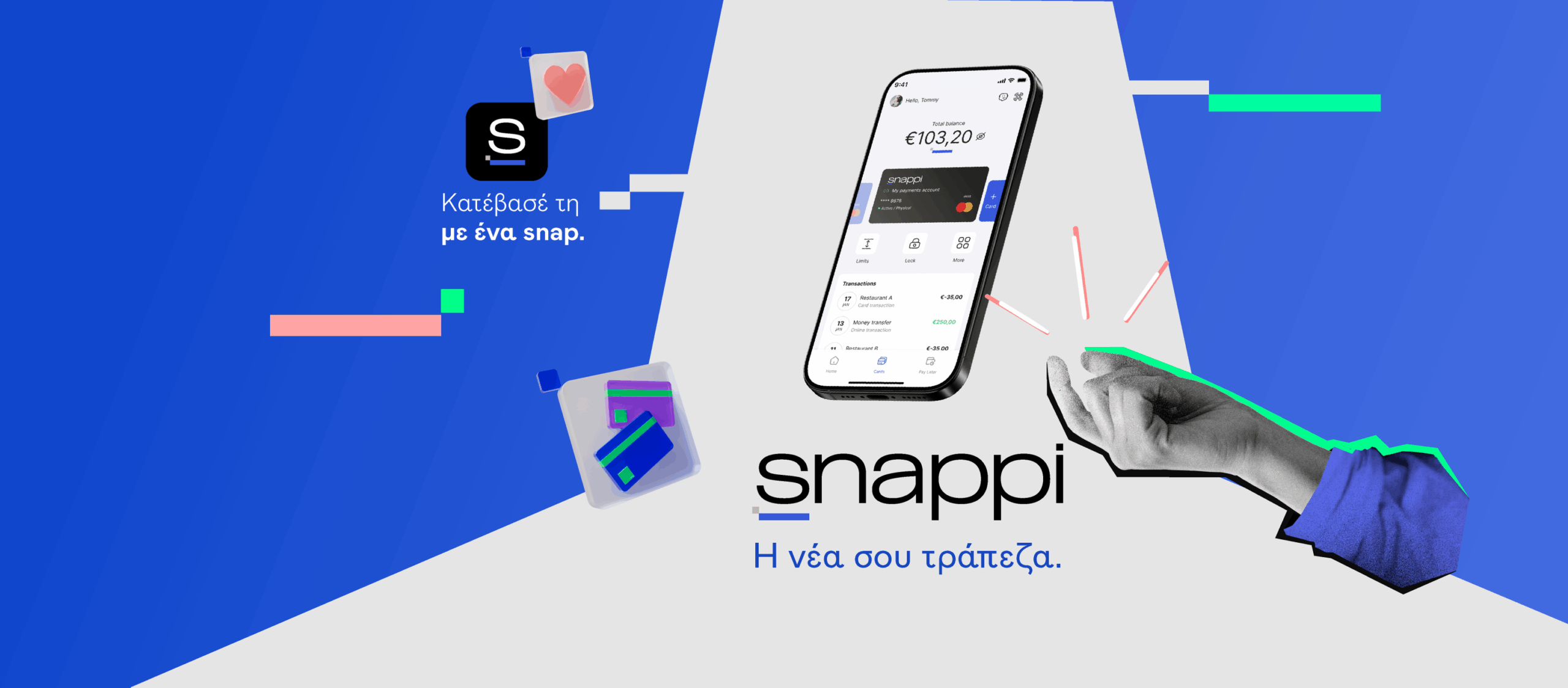 «Στη Snappi, επανεξετάσαμε πώς πρέπει να είναι το banking: απλό, διαφανές και προσαρμοσμένο στην πραγματική ζωή. Δημιουργήσαμε μια ψηφιακή πλατφόρμα, που στηρίζεται στην εμπιστοσύνη, συνδυάζοντας την ευκολία του fintech με την σταθερότητα μιας πλήρως αδειοδοτημένης τράπεζας της Ευρωπαϊκής Ένωσης. Η διαφάνεια έχει κομβικό ρόλο σε όλα όσα κάνουμε: χωρίς περίπλοκους όρους, χωρίς απρόσμενα κόστη, μόνο ξεκάθαρες και δίκαιες τραπεζικές συναλλαγές. Με ισχυρές Ελληνικές ρίζες και διεθνή προοπτική, ανήκουμε σε μια γενιά από neobanks που είναι ευέλικτες, συμπεριληπτικές, και πραγματικά χρήσιμες στην καθημερινότητα των πελατών μας».