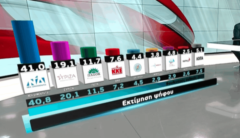 Προβάδισμα 5,9% υπέρ της Νέας Δημοκρατίας στην δημοσκόπηση της ΜRB
