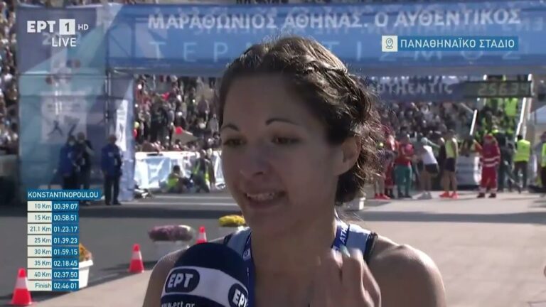 Συγκινεί η Βασιλική Κωνσταντινοπούλου, η πρώτη δρομέας που έκοψε το νήμα στην γραμμή τερματισμού  του 39ου Μαραθωνίου της Αθήνας.Μιλώντας το...