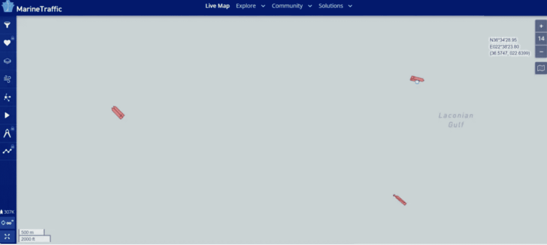 Με μια αναζήτηση στην ιστοσελίδα Marine Traffic, που καταγράφει τη θέση και την πορεία των σκαφών που κυκλοφορούν στη θάλασσα, μπορεί ο καθένας να επιβεβαιώσει MarineTraffic: Global Ship Tracking Intelligence ότι πρόκειται πράγματι για δεξαμενόπλοια υπό ξένη σημαία που μεταφέρουν αργό πετρέλαιο. Κάνοντας ζουμ στις κόκκινες κουκίδες (τάνκερ) βλέπει κανείς ότι συχνά τα δεξαμενόπλοια αργού πετρελαίου είναι σε ζευγάρια. Την στιγμή που γράφεται αυτό το άρθρο τα πλοία που μετράμε είναι 15, από τα οποία τέσσερα ζευγάρια βρίσκονται πολύ κοντά το ένα στο άλλο.