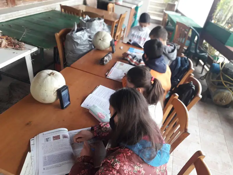 Μη μπορώντας λοιπόν να βλέπω αυτήν την κατάσταση, έχω διαμορφώσει λίγο ένα χώρο έξω από το κατάστημα όπου τα παιδιά κάθονται μέσα στο κρύο πλέον να κάνουν μάθημα, τους έδωσα ένα παλιό λαπτοπ που είχα αλλά δεν φτάνει όπως καταλαβαίνετε και τα παιδιά έχουν και ένα κινητό. Με το ίδιο κινητό προσπαθούν να κάνουν μάθημα τρία παιδιά μαζί! Αυτές οι εικόνες είναι ντροπή για όλους!! Πέντε παιδιά μεσα στο κρύο γιατί εδώ είναι ορεινά και σε λίγες μέρες θα κάνει ακόμα περισσότερο κρύο, να προσπαθούν να μάθουν γράμματα στο δρόμο με ένα κινητό!! Παρακαλώ όποιον ακούει να μεριμνήσει να έρθει γρήγορα ίντερνετ στο χωριό μας και να δοθούν τάμπλετ από το υπουργείο στα παιδιά. Εγώ ντρέπομαι με αυτήν την κατάσταση»!