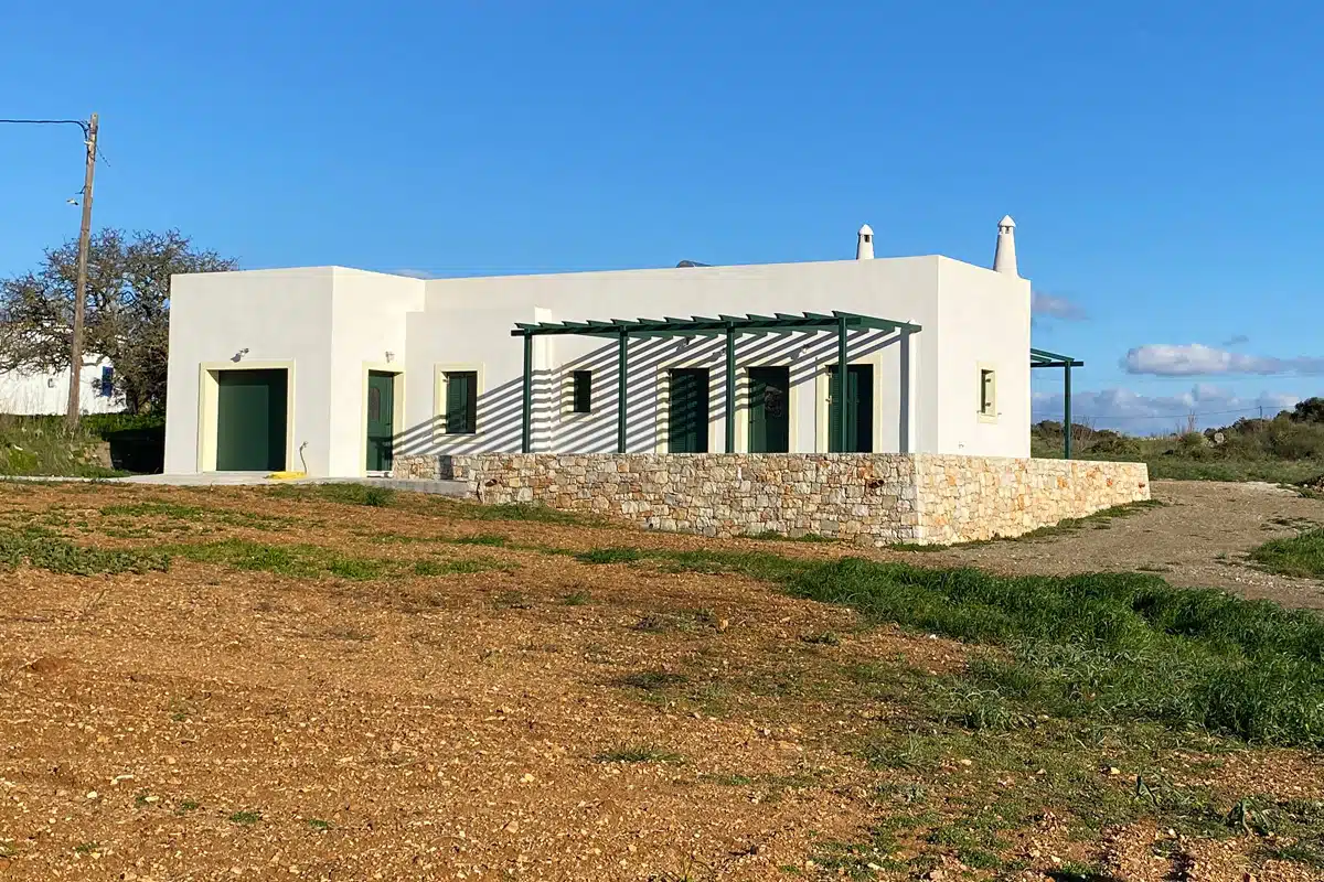 Κάπως έτσι, η σοφία των παλαιών φαίνεται να εμπεριέχεται και στο νέο αυτό υπέροχο σπίτι στον Άγιο Ηλία. Το σπίτι κοιτάζει προς το νότο, έχει στην πλάτη του τον βορρά, έχει την πέργκολά του που περιμένει το κλήμα να αναρριχηθεί, τις ωραίες του καμινάδες. Βέβαια, αυτό το σύγχρονο σπίτι προφανώς χτίστηκε με διαφορετική διαρρύθμιση στους εσωτερικούς χώρους και διαφορετικά δομικά υλικά. Κι αν οι χοντροί πέτρινοι τοίχοι παρείχαν μια θερμομόνωση εκείνες τις εποχές, αυτό το σπίτι έχει ντυθεί με θερμομονωτικές προσόψεις έτσι ώστε να είναι βιοκλιματικό, οικολογικό και οικονομικό!