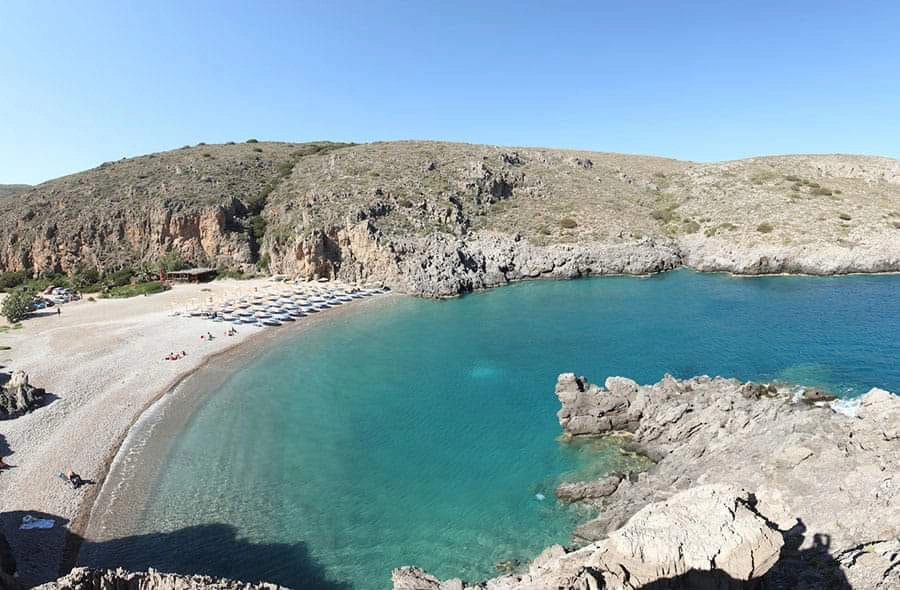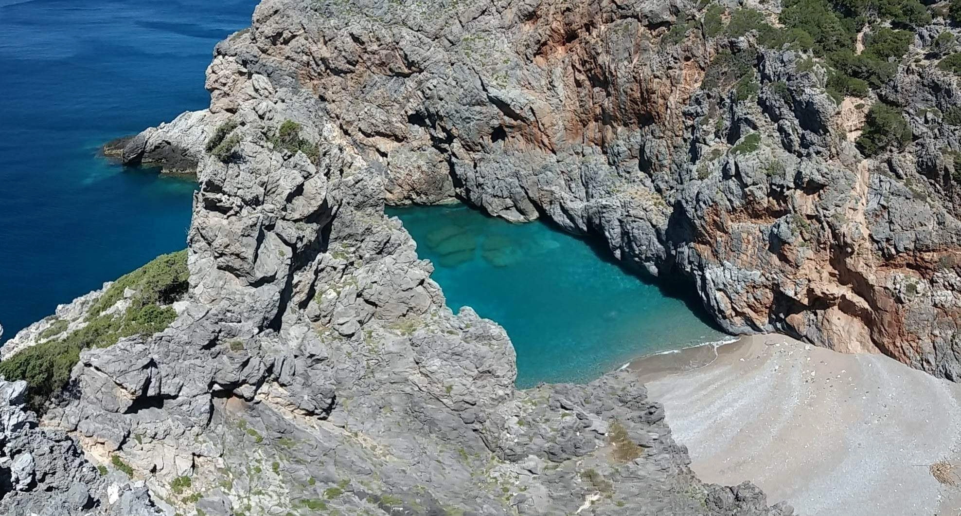 Συγκλονιστική παραλία που είναι κρυμμένη ανάμεσα σε ψηλά απότομα βράχια. Εκεί καταλήγει και το ρέμα που ξεκινά από τους καταρράκτες του Μυλοποτάμου. Είναι μικρή, με ψιλό βοτσαλάκι, βαθιά κρυστάλλινα νερά και είναι ιδανική για χαλαρές, μοναχικές βουτιές καθώς για να φτάσει κάποιος θα δυσκολευτεί αρκετά. Για αυτό και η καλύτερη λύση για να την προσεγγίσετε είναι με σκάφος. Πάρτε και μάσκα για να δείτε το βυθισμένο κανόνι στα νερά της.